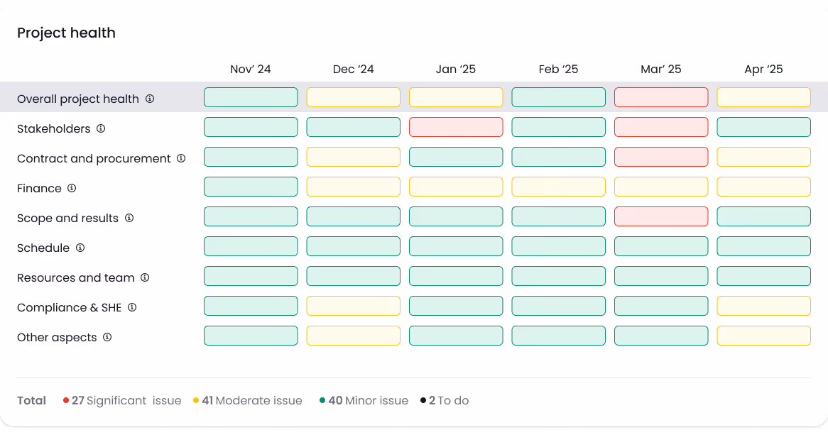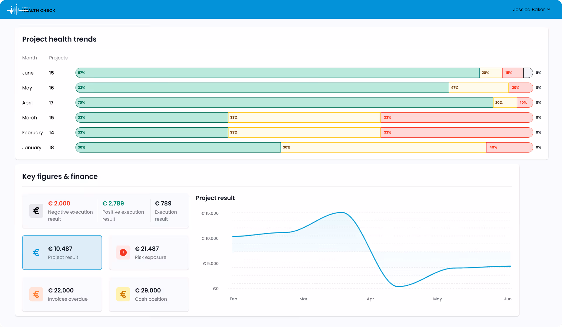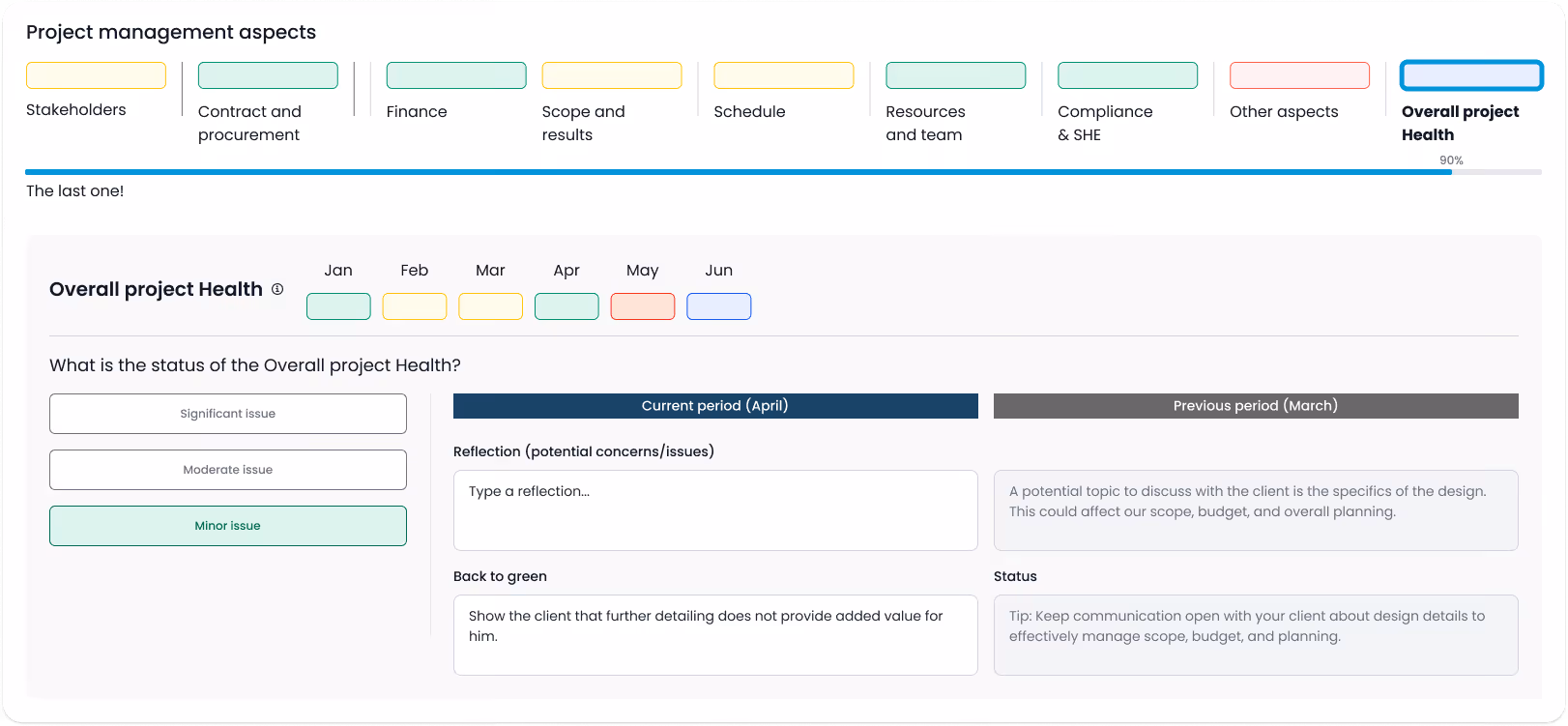 Door maandelijkse reflectie signaleert Project Health Check problemen vroeg, geeft het continu inzicht in de gezondheid van projecten en zorgt het voor meer voorspelbare en betere resultaten.